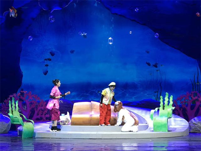 《浮出水面》講述了未來(lái)人類因一次地震而沉入海底生活,小男孩“歡歡”一家在未來(lái)世界認(rèn)識(shí)到環(huán)境污染的嚴(yán)重,在中華鱘“奔奔”的指引下浮出水面,最后重回陸地建設(shè)家園的故事,劇情將大量音樂(lè)舞蹈與科學(xué)知識(shí)結(jié)合,涵蓋垃圾分類、人體急救、阿基米德原理、火箭噴射等多種科學(xué)知識(shí)。整場(chǎng)演出亮點(diǎn)紛呈。