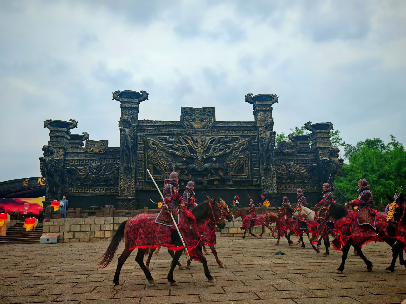 “各位看官,三國演義第四十四回到第五十回說道,曹操不費(fèi)吹灰之力擁有了荊襄水軍,號(hào)稱80萬大軍向長江推進(jìn)……”5月1日上午9時(shí),隨著“說書人”一聲高喊,三國赤壁古戰(zhàn)場城門緩緩打開,10名戰(zhàn)士策馬躍出,戰(zhàn)鼓響起,劉備、關(guān)羽、張飛等三國人物也陸續(xù)出場,現(xiàn)場掌聲不斷。沉浸式場景將數(shù)百名圍觀游客穿越回1800多年前的三國時(shí)空。