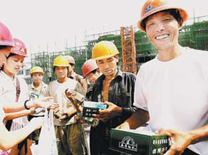 圖文:防暑降溫物資送給農(nóng)民工(圖) 07-27