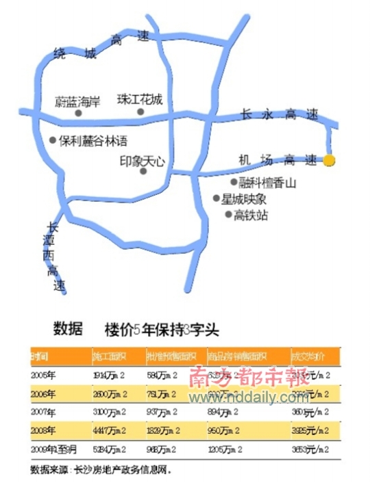 在長(zhǎng)沙市巡城的短短幾天里,記者所到之處都可以發(fā)現(xiàn)不少樓盤(pán)在建或者在售。據(jù)當(dāng)?shù)孛襟w資深人士介紹,目前長(zhǎng)沙在售的樓盤(pán)就已經(jīng)超過(guò)200個(gè),還有不少正在動(dòng)工建設(shè)中,這些樓盤(pán)動(dòng)不動(dòng)就是數(shù)百畝,甚至上千畝。面積遠(yuǎn)大于長(zhǎng)沙的廣州市,目前活躍樓盤(pán)只在100個(gè)左右,并且不少還是袖珍樓盤(pán)。另外,長(zhǎng)沙城區(qū)人口才不到300萬(wàn)人,廣州已經(jīng)超過(guò)1000萬(wàn)。雖然長(zhǎng)沙人口不到廣州的三分之一,但是長(zhǎng)沙的房地產(chǎn)銷售面積近幾年都超過(guò)廣州,今年1至10月份長(zhǎng)沙銷售面積已經(jīng)超過(guò)1000萬(wàn)平方米。