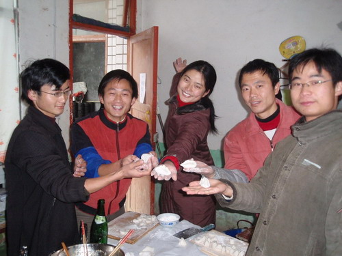 圖為:難得的“牙祭”——去年冬至,5名伙伴聚在一起包餃子(左起分別為:周磊、丁記峰、丁潔、史東偉、施世明)